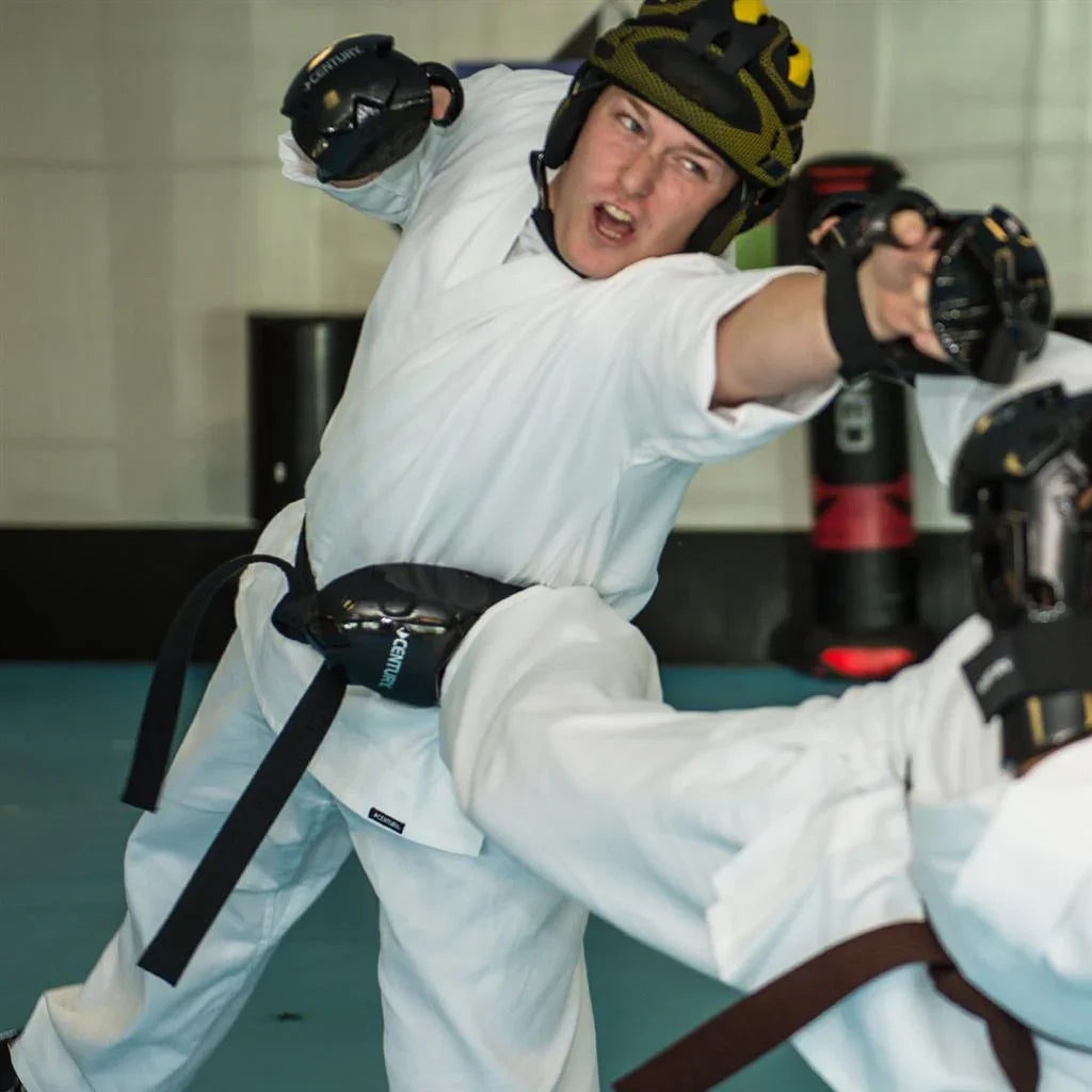 These high-top sparring boots provide exceptional coverage, with reinforced bottom straps for traction. The contoured design allows for better air flow for increased comfort and the adjustable hook-and-loop straps provide a secure fit. Composed of 0.5-inch thick dipped foam. Imported