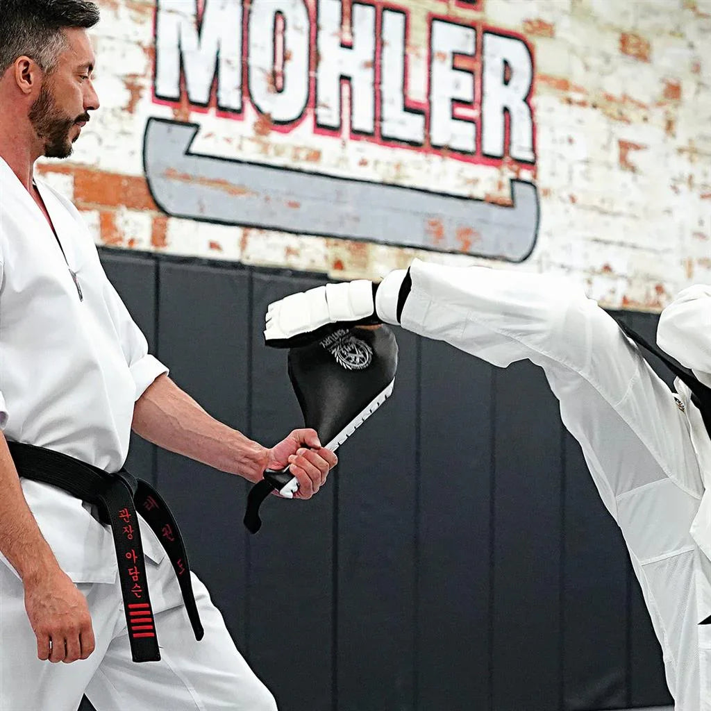 Designed for training and sparring. Double hook strap provides enhanced stability. Imported.